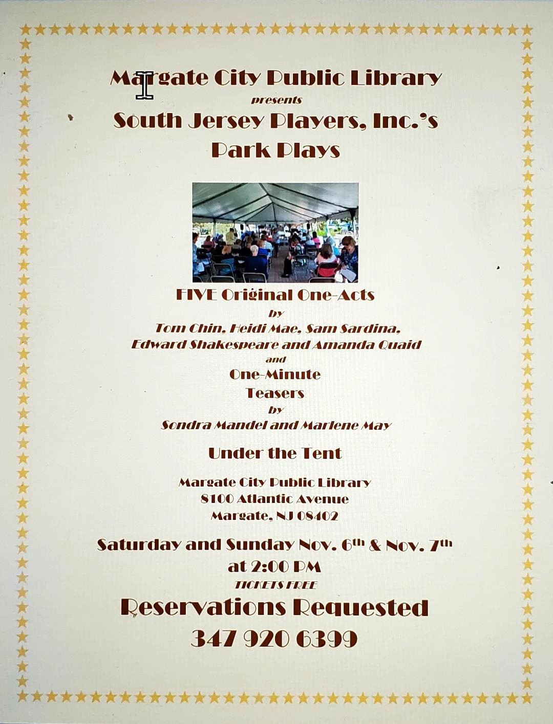 studio;space 112 Woodland Avenue, Somers Point, NJSouth Jersey Players in association with SPQR Stage Company, will present BIG LOUIE IS COMIN’ TO TOWN by Jeff Dunne and directed by Marlene May. In this short 15-minute comedy, Santa Claus (Edward Shakespeare) may think he has the whole "make the kids happy with gifts thing” in the proverbial bag - but just wait! […]